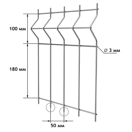 Геометрические параметры 3D-панелей также стандартизированы и могут варьироваться в зависимости от производителя и выбранной серии. Ширина стандартных секций обычно составляет 2,5 м или 3,0 м, что позволяет легко монтировать заборы большой протяженности. Высота панелей имеет очень широкий диапазон, начиная от минимальных 0,63 м и заканчивая высокими секциями до 3,33 м и даже 6 м. Число ребер жесткости напрямую зависит от высоты забора: чем он выше, тем больше таких ребер требуется для обеспечения необходимой жесткости и устойчивости к ветровым нагрузкам. Например, для низких панелей (0,63–1,43 м) может быть достаточно 2 ребер, тогда как для высоких секций (2,03+2,03 м) их число достигает 8. Размер ячейки, как правило, прямоугольный, наиболее распространенным вариантом является 50×200 мм или 55×200 мм, хотя встречаются и другие размеры, такие как 200×55 мм. Опорные столбы, к которым крепятся панели, изготавливаются из профильной трубы прямоугольного или круглого сечения, например, 60×60 мм или 80×80 мм, с толщиной стенки от 1,2 мм до 3,0 мм. Весь комплект для монтажа, помимо самих панелей и столбов, включает антивандальные крепежные элементы (П-, Г-, У-образные скобы), заглушки для торцов столбов и горизонтальные укрепляющие прутья.